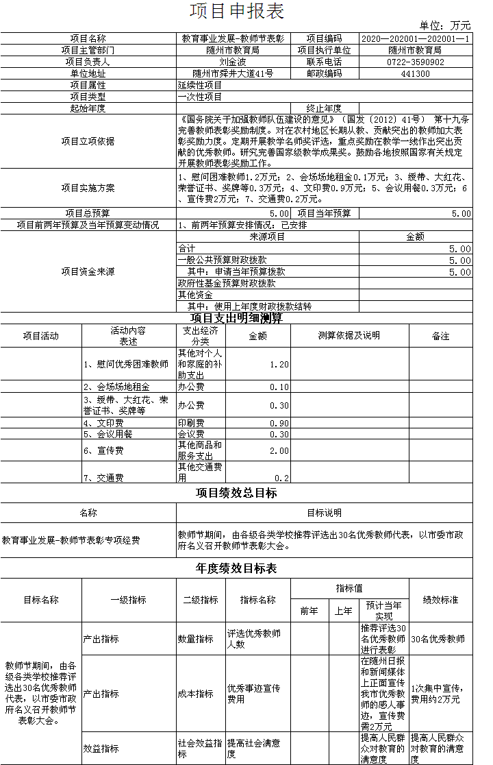 第四部分隨州市教育局2020年預算績效情況