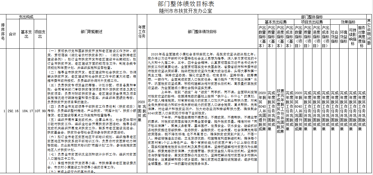 第四部分 隨州市人民政府扶貧開發辦公室2020年預算績效情況