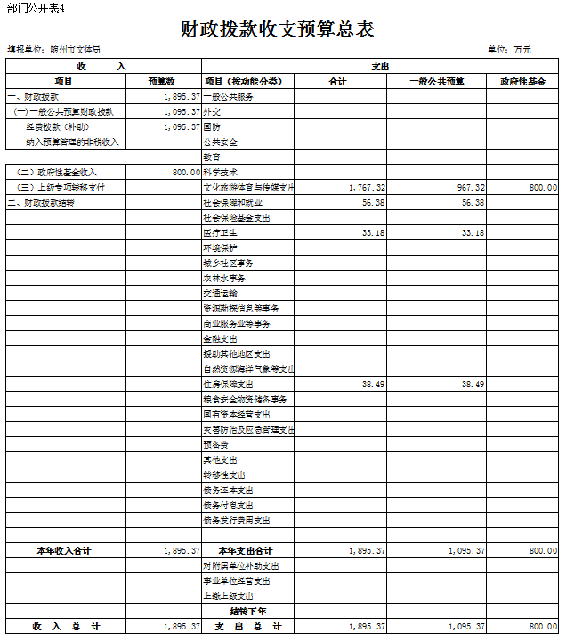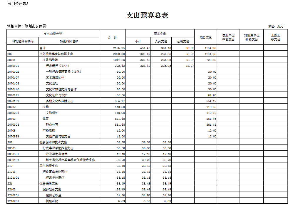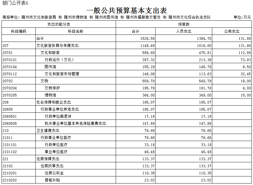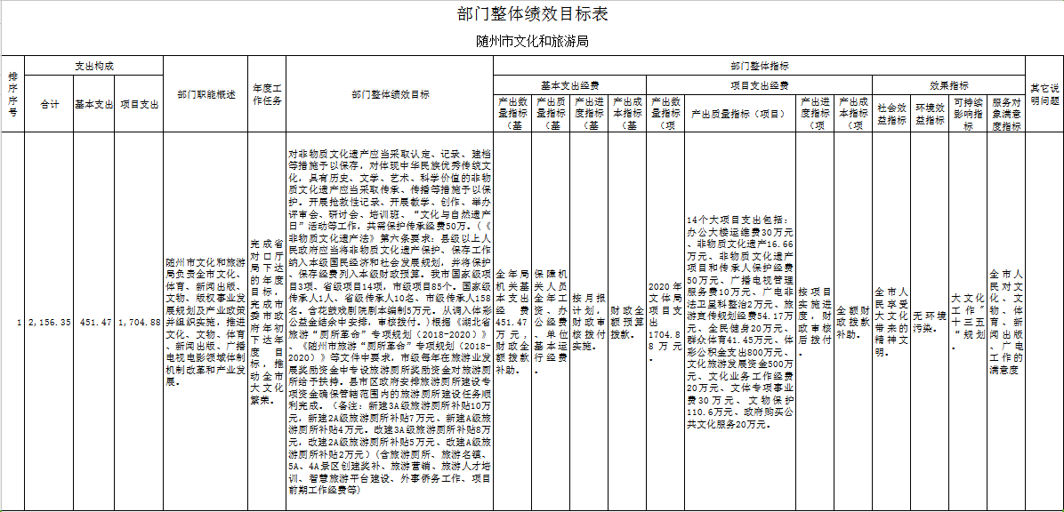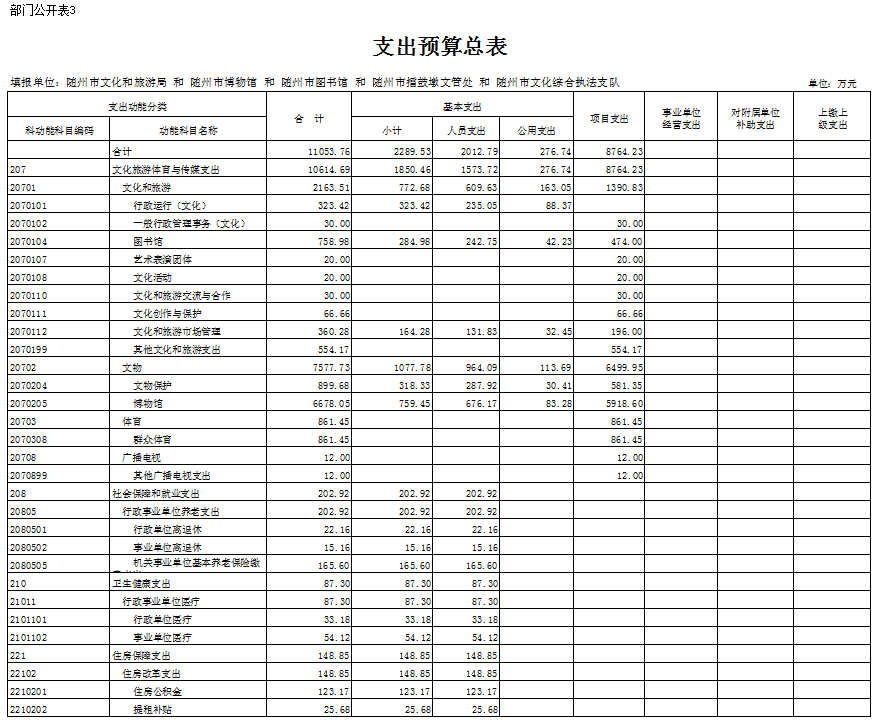 第三部分 ?隨州市文化和旅游局2020年部門預算表