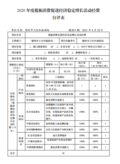 第四部分 ?隨州市文化和旅游局2020年預算績效情況