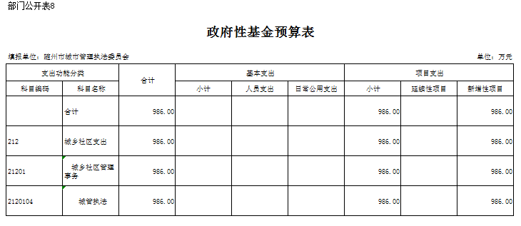2020年委機關政府性基金986萬元,比上年增加806萬元,增加447.78%,增加原因是機構改革單位合并,項目增加。