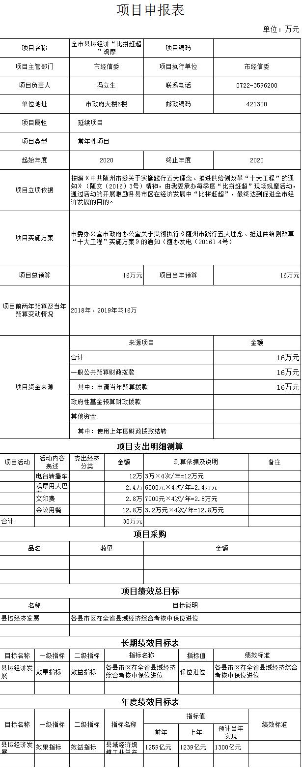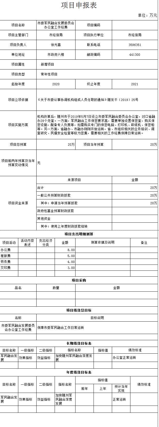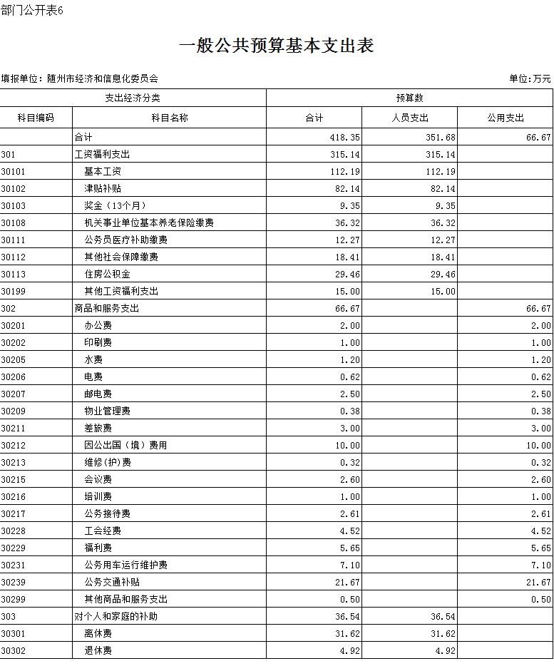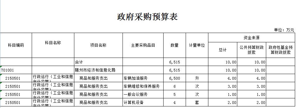 依據《隨州市財政局關于下達2020年市直部門預算的通知》,2020年隨州市經信局預算指標如下: