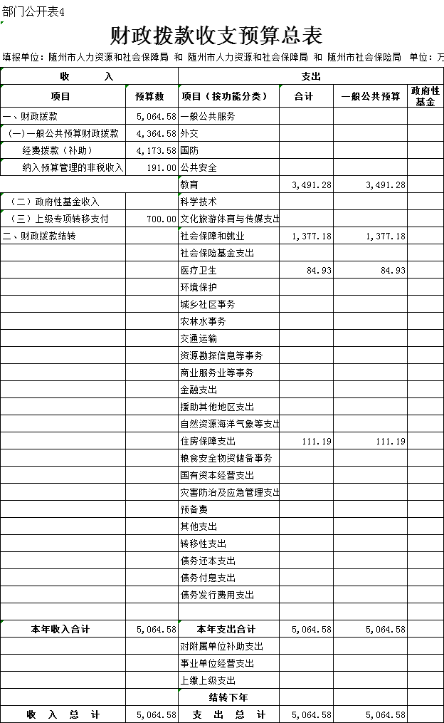 四、財政撥款收支總表