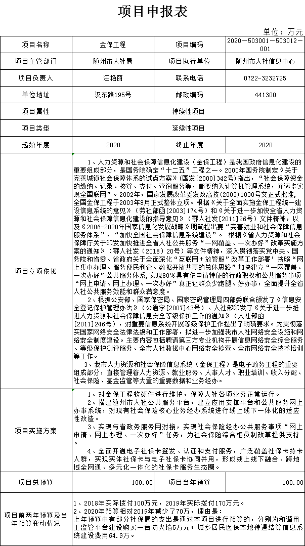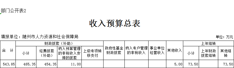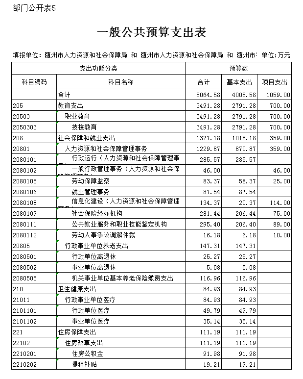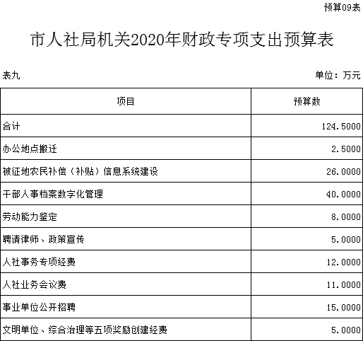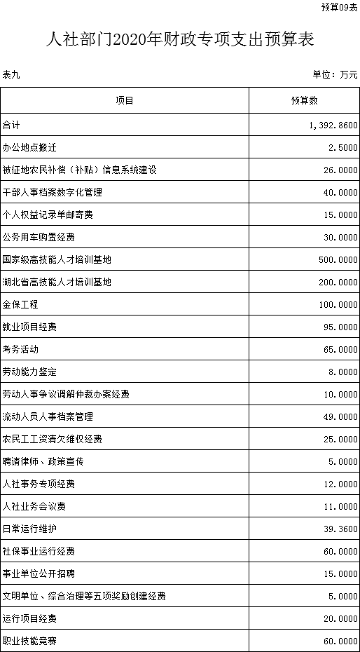 第三部分 ?隨州市人社局2020年部門預算表