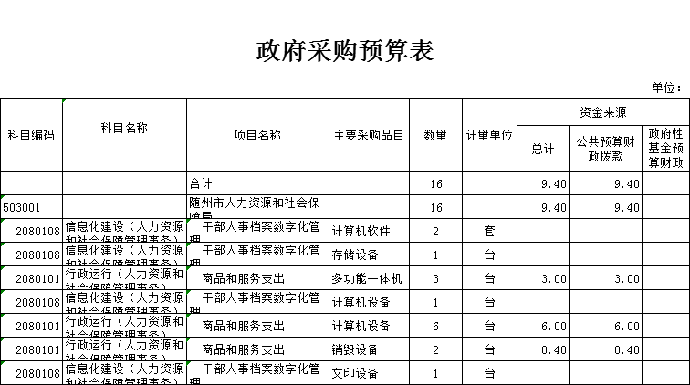 十、政府采購預算表