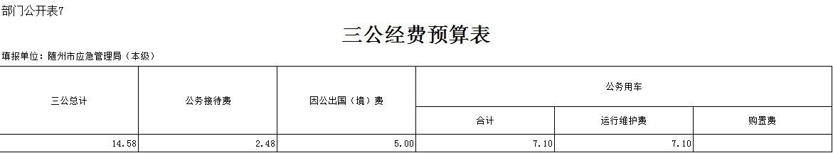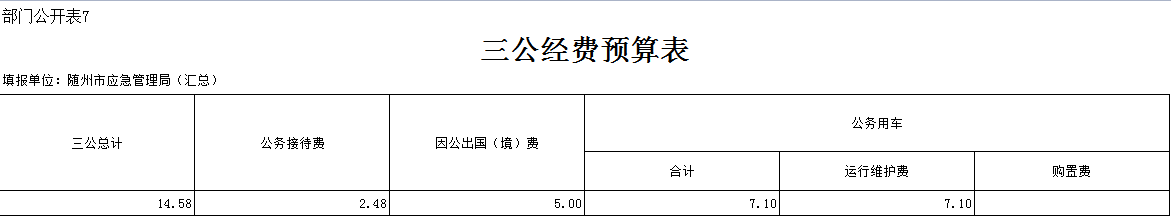 2020年隨州市應急管理局本級“三公”經(jīng)費年初預算安排14.58萬元。比上年增加了2.48萬元,同比增長20.49%。