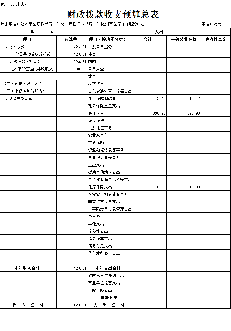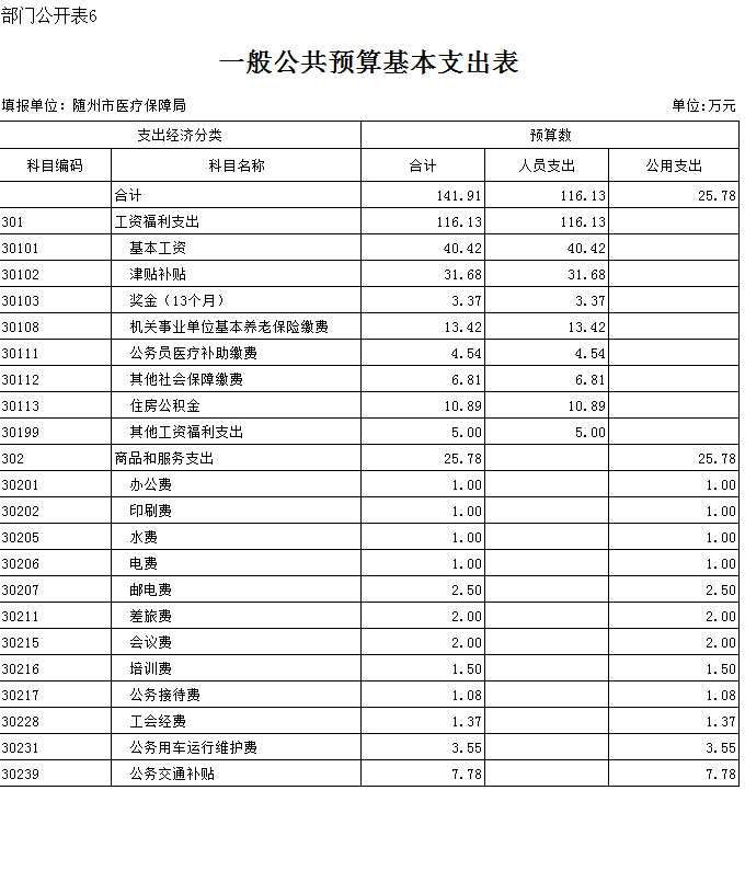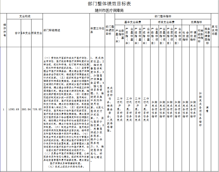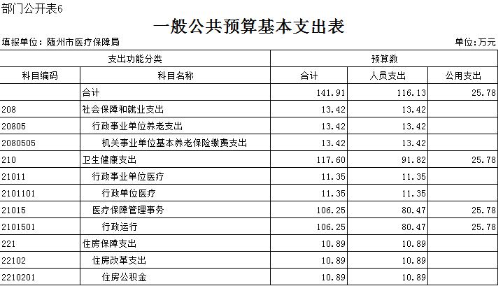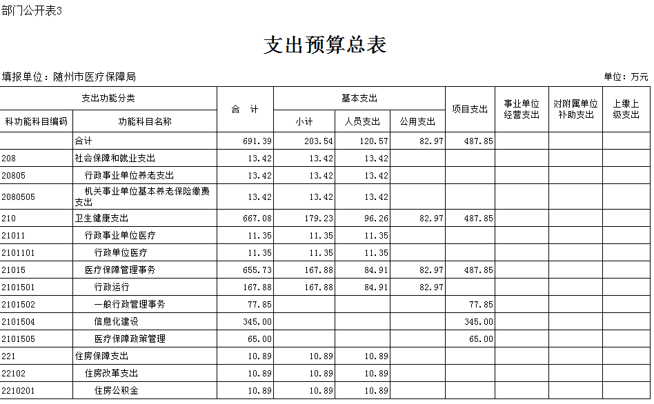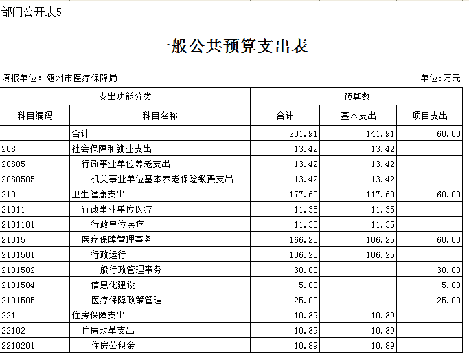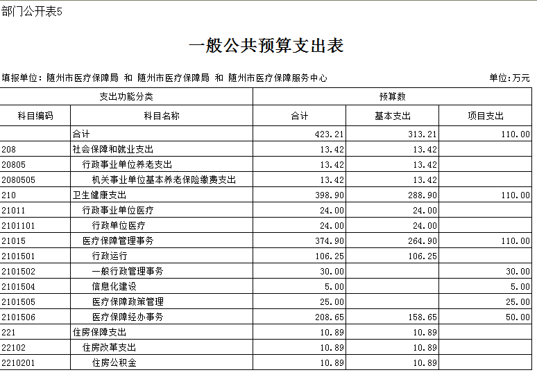 隨州市醫療保障局2020年部門預算