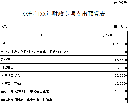 九、財政專項支出預算表