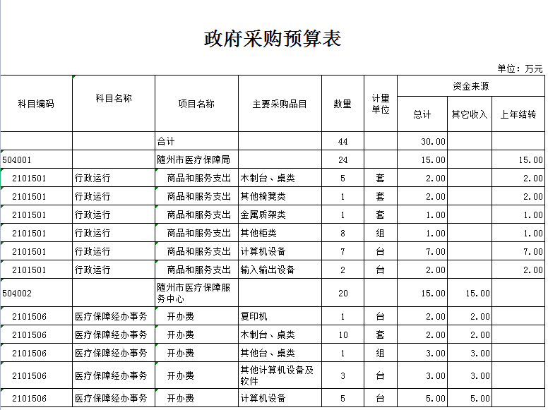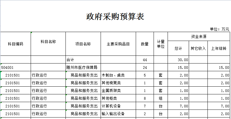 2020年部門政府采購總額30萬元,主要是辦公設備購置。