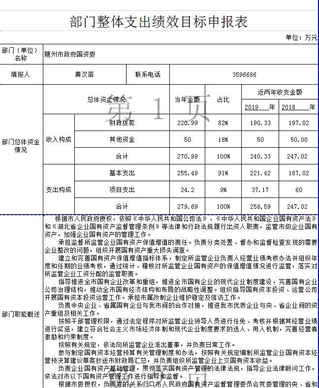 第二部分 隨州市國資委2020年部門預算情況說明一、2020年部門預算收支情況說明