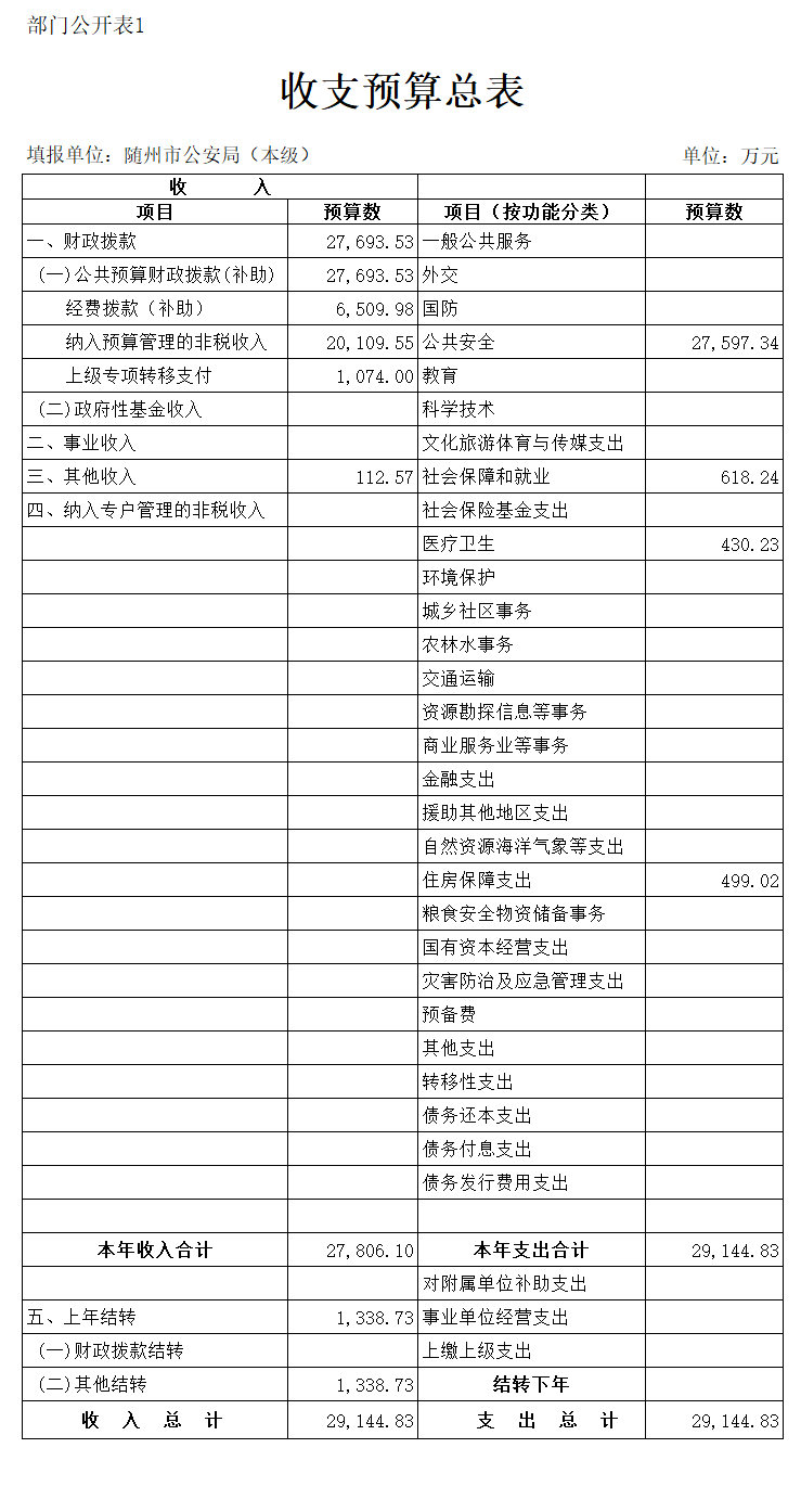 第三部分??隨州市公安局本級及匯總2020年部門預算表