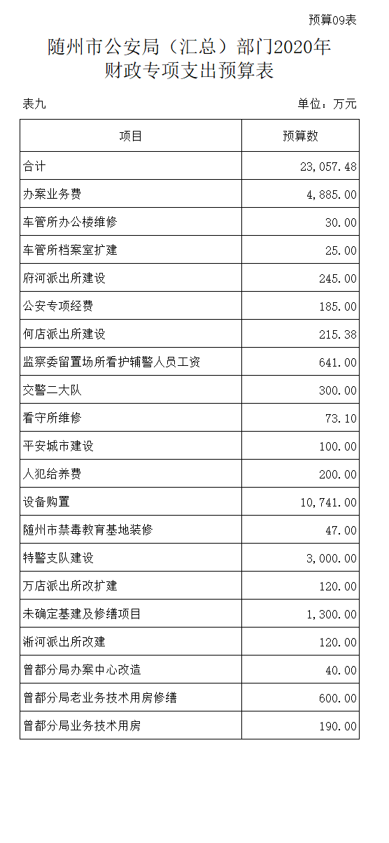 1、隨州市公安局匯總財政撥款項目支出20232.83萬元,比上年度增加10199.83萬元,增加101.66%,根據實際需要安排。