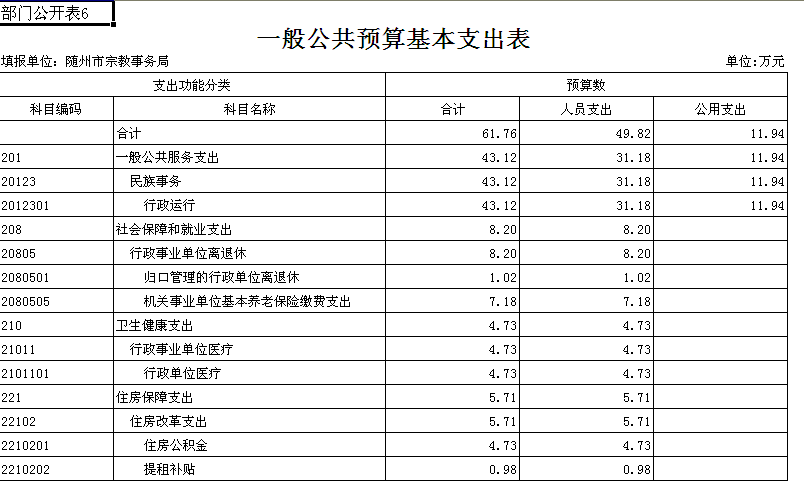 | 部門(單位) 名稱 | 隨州市民族宗教事務(wù)局 | |||||||||