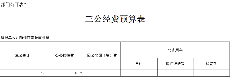 2019年隨州市民宗局“三公”經(jīng)費年初預(yù)算安排0.39萬元,與上年預(yù)算比較無增減變化,其中: