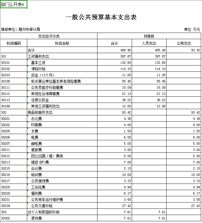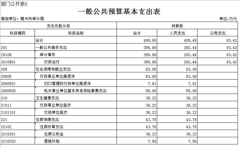 第三部分 隨州市審計(jì)局2019年部門預(yù)算表