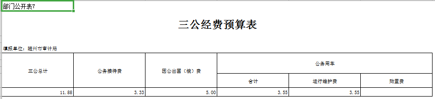 2019年市審計(jì)局“三公”經(jīng)費(fèi)年初預(yù)算安排11.88萬元,比上年增加0.23萬元,同比增加1.97%。主要原因是公務(wù)接待費(fèi)增加。其中: