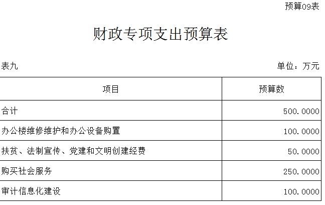 九、財(cái)政專項(xiàng)支出預(yù)算表