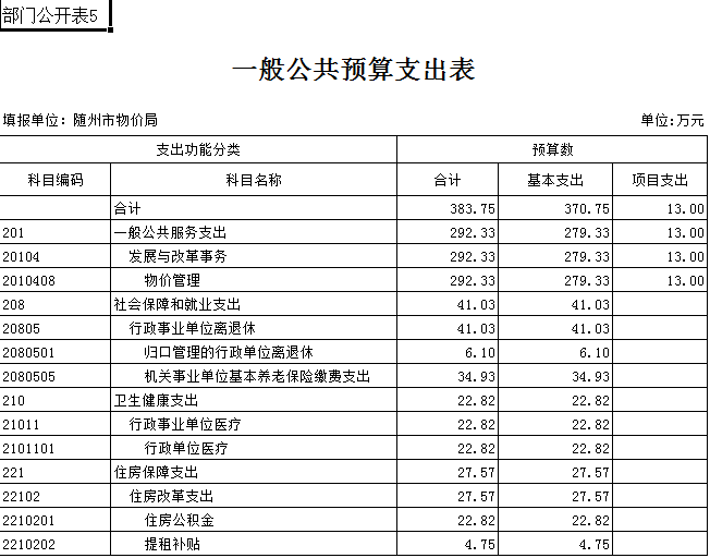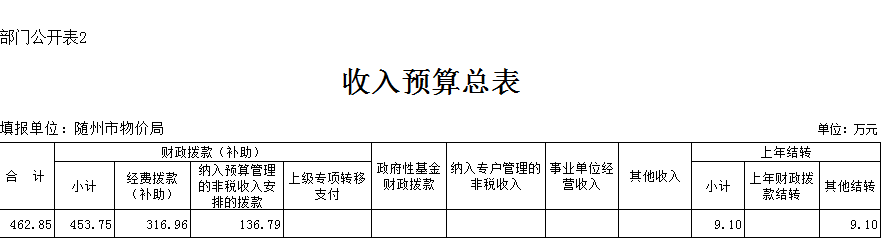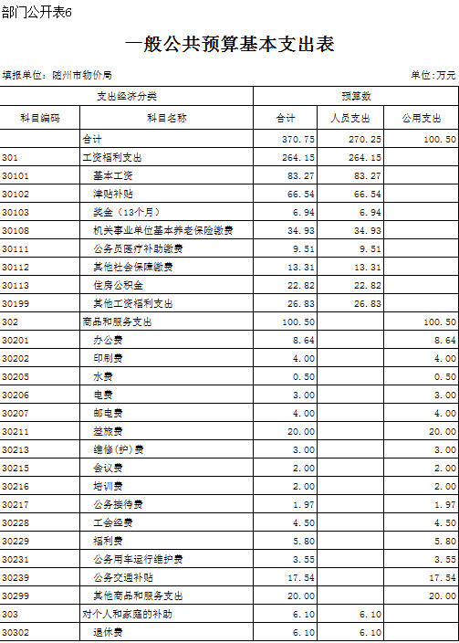 第三部分隨州市物價局2019年部門預算表