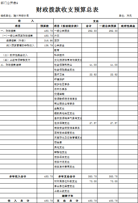 四、財政撥款收支總表