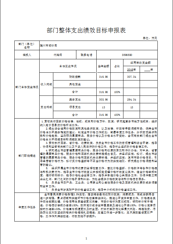 一、部門整體績效目標編制情況