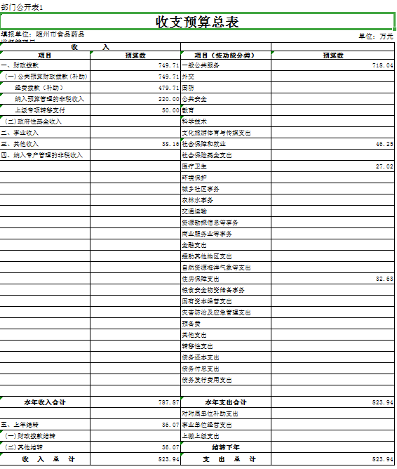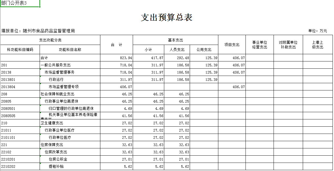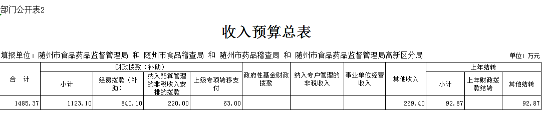 第三部分 隨州市食品藥品監督管理局2019年部門預算表