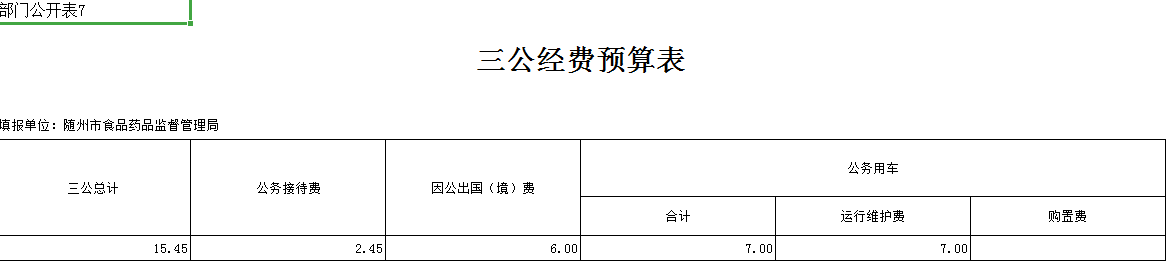 2019年隨州市食品藥品監督管理局“三公”經費年初預算安排15.45萬元,總體較上年減少0.60萬元,減少比例為3.74%,增減主要原因是根據上年支出情況對預算進行了調整。其中:公務接待費2.45萬元,比上年持平;因公出國(境)費6.00萬元,比上年增加1.00萬元,增加比例為20%,增加主要原因是參照近三年因公出國支出情況而調整了預算;公務用車運行維護費7.00萬元,比上年減少1.6萬元,減少比例為18.60%,減少的主要原因是:執法車輛較少(保有量2輛),執法時,使用公務車平臺車輛成本較低,導致車輛運行維護費用減少。無公務用車購置預算。