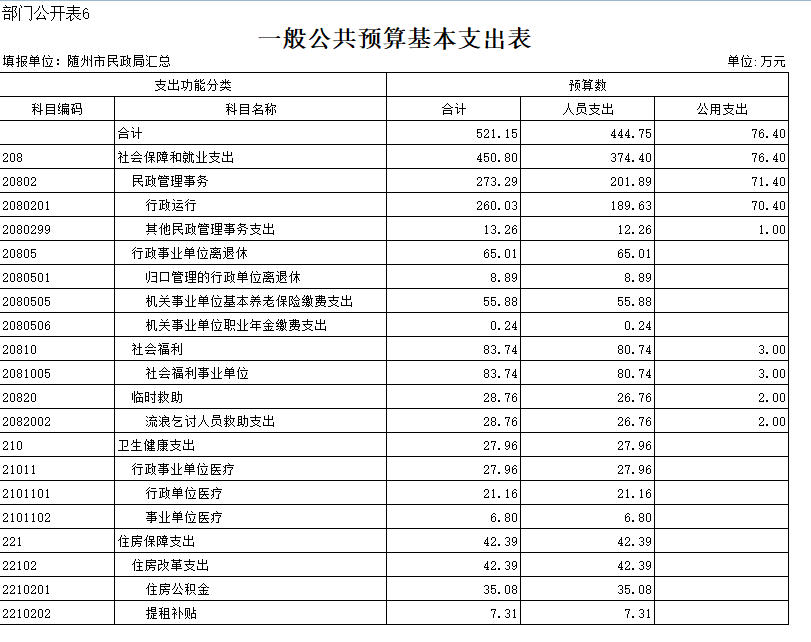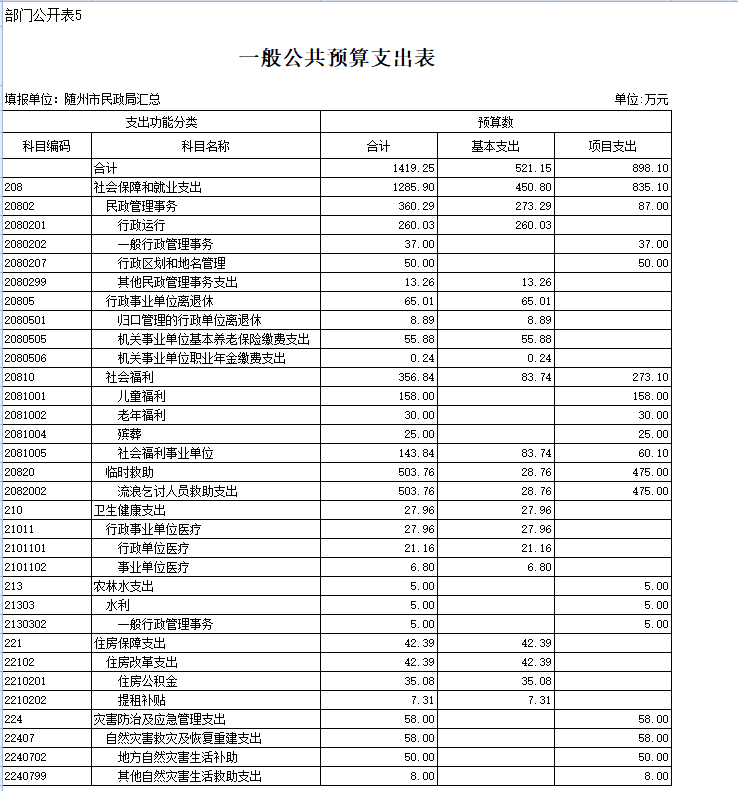 第三部分 隨州市民政局2019年部門預(yù)算表