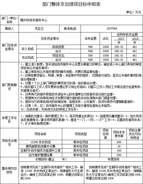 第四部分? 隨州市政務服務中心2019年預算績效情況