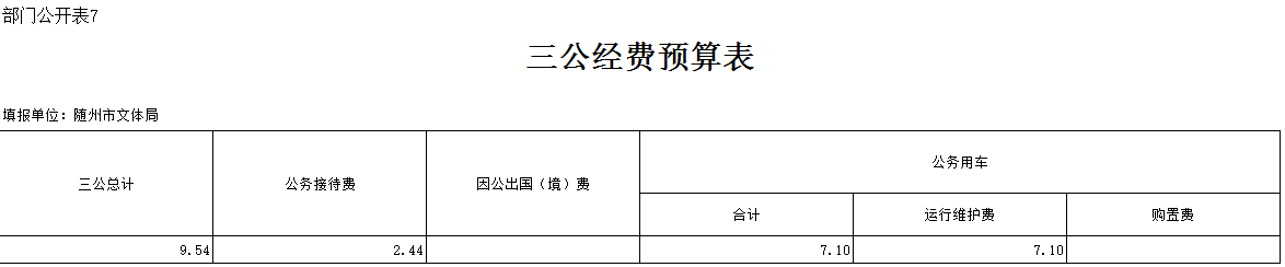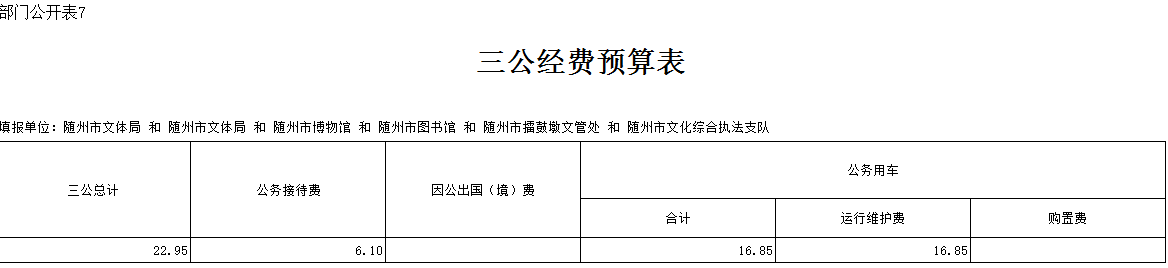 2019年預算中,隨州市文體系統三公經費22.95萬元,比上年下降2萬元,下降8%。其中公務接待費6.1萬元,比上年下降0.8萬元,下降11.59%。下降原因是嚴格進行財務管理,規范會計核算,堅持厲行節約。公務用車運行維護費16.85萬元,比上年下降1.2萬元,下降6.64%。系統公務用車購置費無。局本級三公經費9.54萬元,比上年下降0.06萬元,下降0.63%。局本級公務接待費2.44萬元,比上年減少0.06萬,下降2.4%。局本級公務用車運行維護費7.1萬元,與上年持平。2019年隨州市文體系統均無因公出國預算經費。