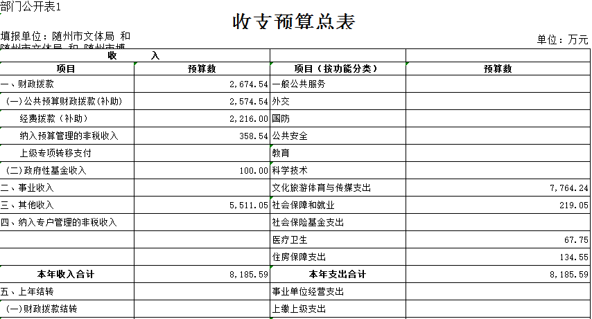 第三部分 隨州市文化體育新聞出版廣電局2019年部門預算表