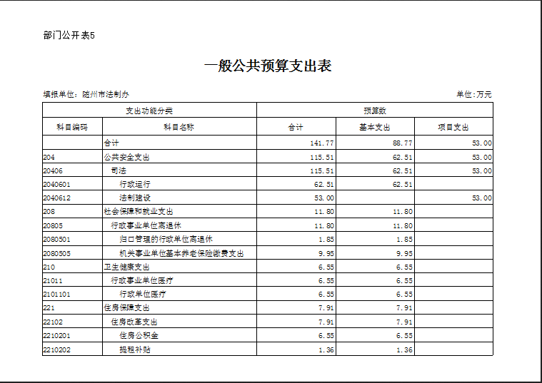 第三部分隨州市人民政府法制辦公室2019年部門預(yù)算表