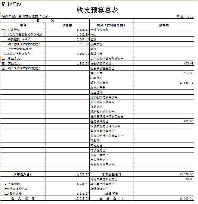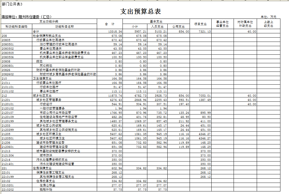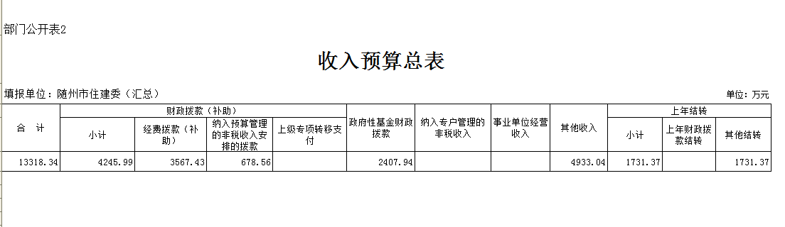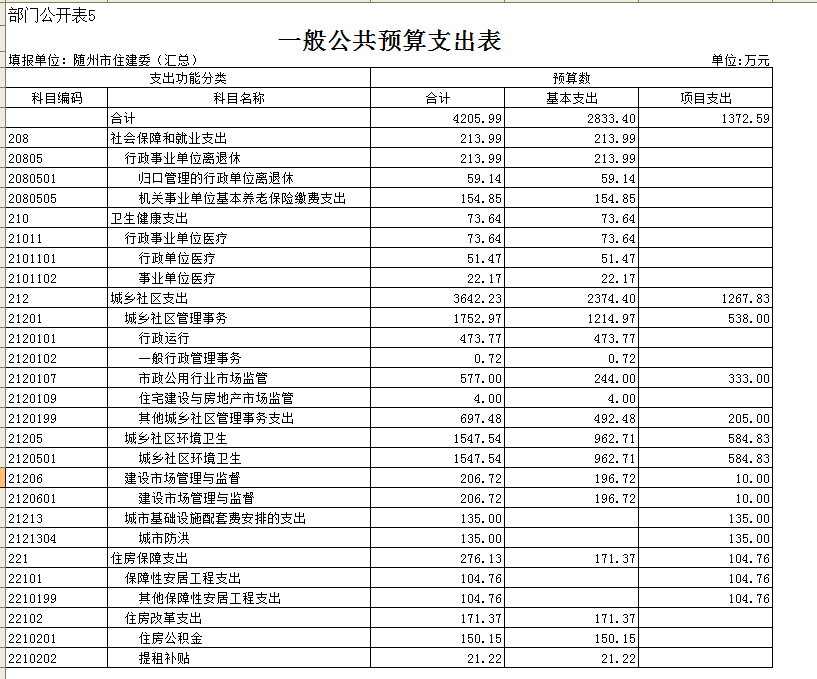 第三部分 隨州市住房和城鄉建設委員會2019年部門預算表