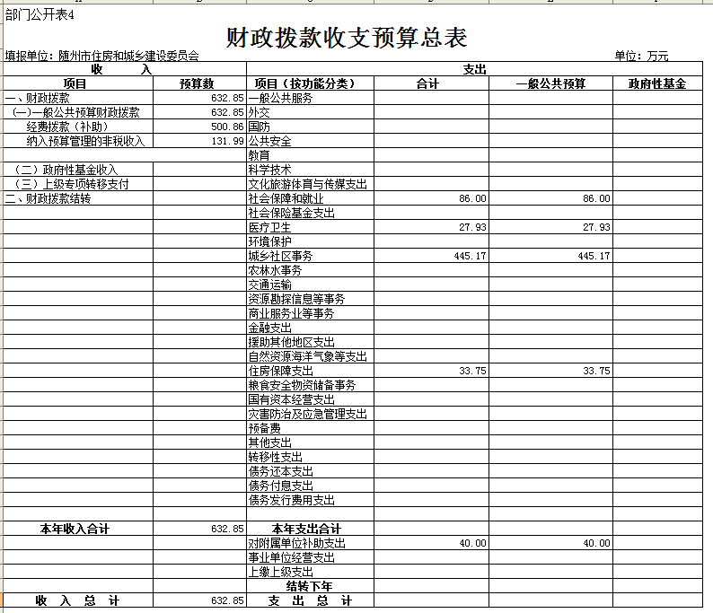 2、市住建委本級2019年財政收入632.85,其中財政撥款632.85萬元。比上年的5052.22萬元減少了4419.37萬元,同比減少87.47%,減少原因為污水處理運行費和部分城市維護費不再由本部門預算。