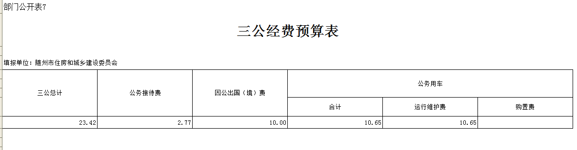 2、市住建委機關2019年“三公”經費預算安排23.42萬元,比上年的16.25萬元增加了7.17萬元,同比增加44.12%。其中:因公出國(境)費10萬元,與上年保持持平(2018年預算內2.8萬元,其它收入7.2萬元)無增減變化。公務接待費2.77萬元,比上年的2.80萬元減少了0.03萬元,同比減少1.07 %,減少的主要原因是:嚴格執行中央八項規定,從嚴控制陪同人數和接待標準。公務用車運行維護費10.65萬元,與上年保持持平,無增減變化。公務用車購置費0萬元,與上年對比無增減。公務用車保有量:一輛,與上年無變化,