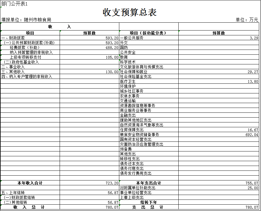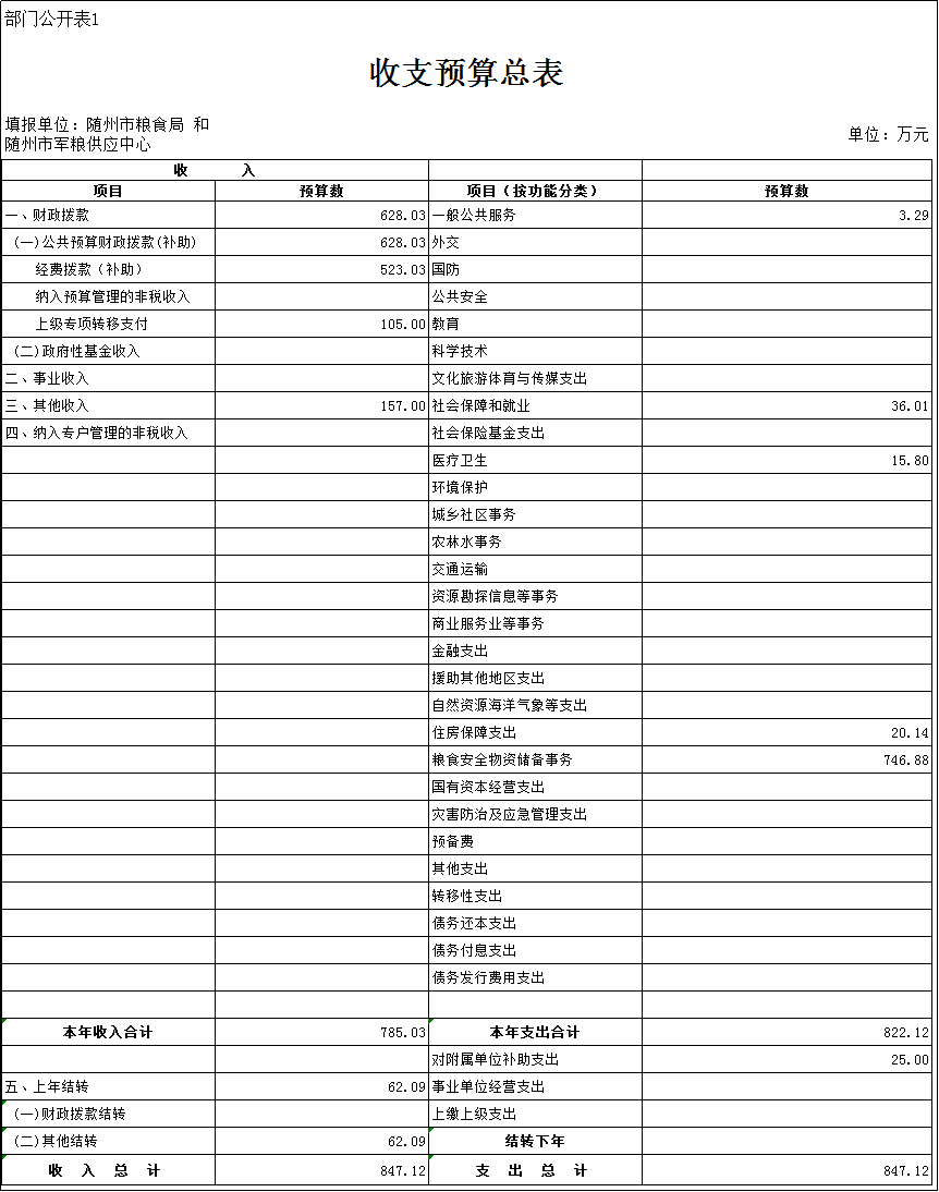 一、市糧食部門2019年預算匯總表
