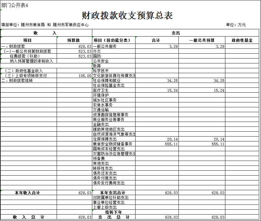 4、財政撥款收支預算匯總表