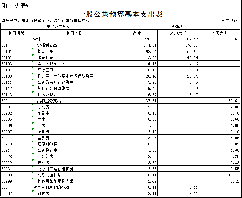 6、一般公共預算基本支出表(匯總表)