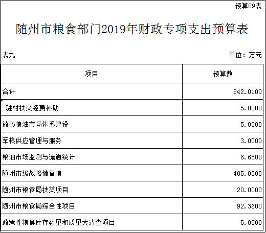 第三部分 ?隨州市糧食局2019年部門預算表