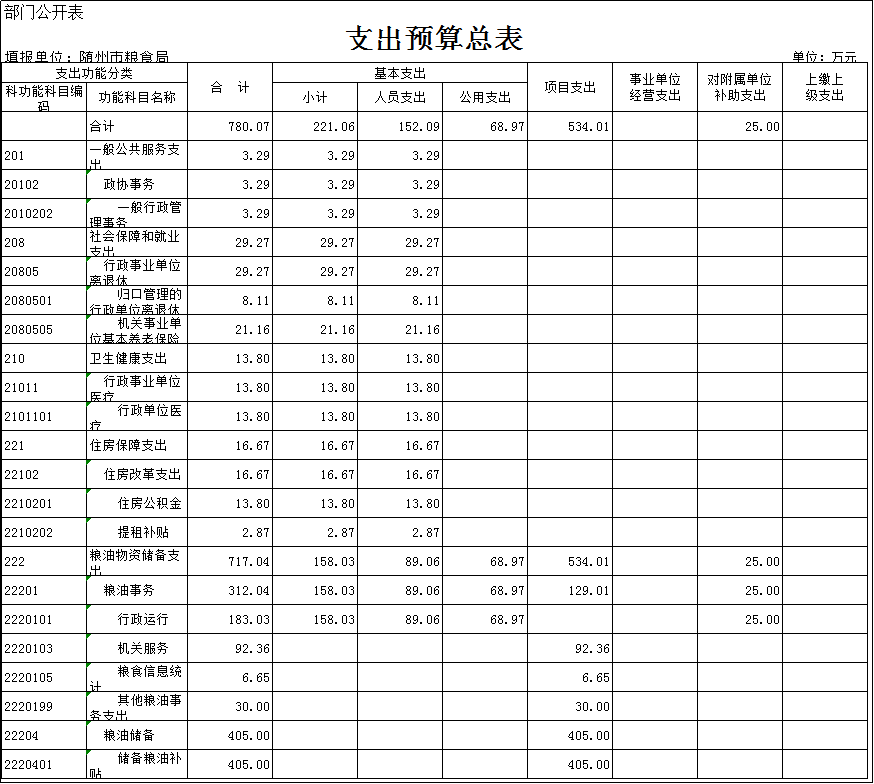 隨州市糧食局2019年部門預算