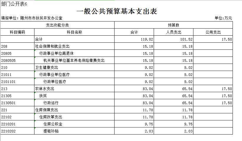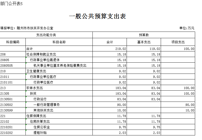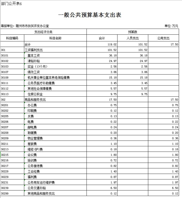第三部分 隨州市人民政府扶貧開發辦公室2019年部門預算表