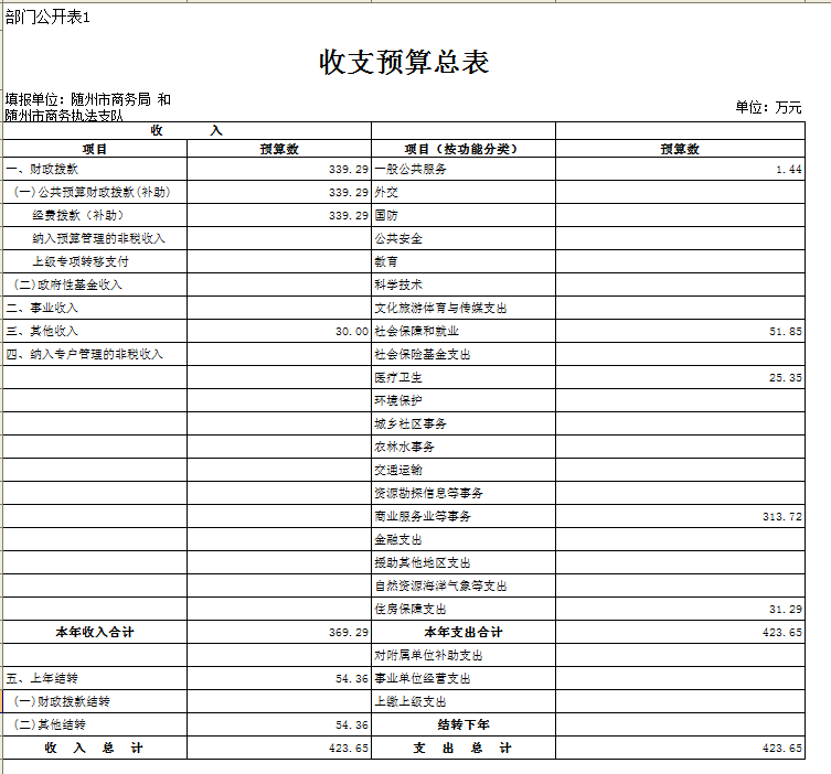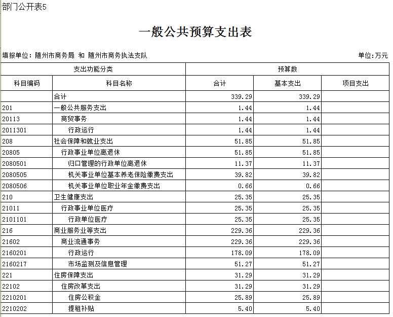 第三部分 隨州市商務(wù)局2019年部門預(yù)算表