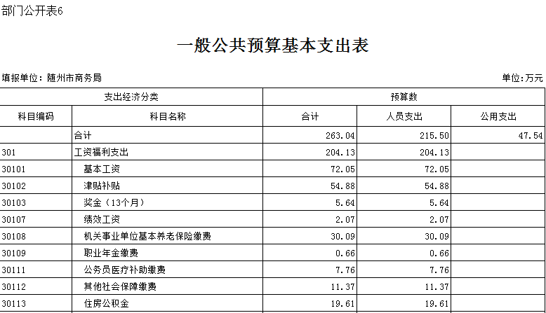 5、基本支出:指為保障機(jī)構(gòu)正常運(yùn)轉(zhuǎn)、完成日常工作任務(wù)而發(fā)生的人員支出(包括基本工資、津貼補(bǔ)貼等)和公用支出(包括辦公費(fèi)、水電費(fèi)、郵電費(fèi)、交通費(fèi)、會(huì)議費(fèi)、差旅費(fèi)等)。