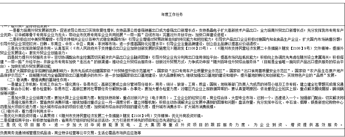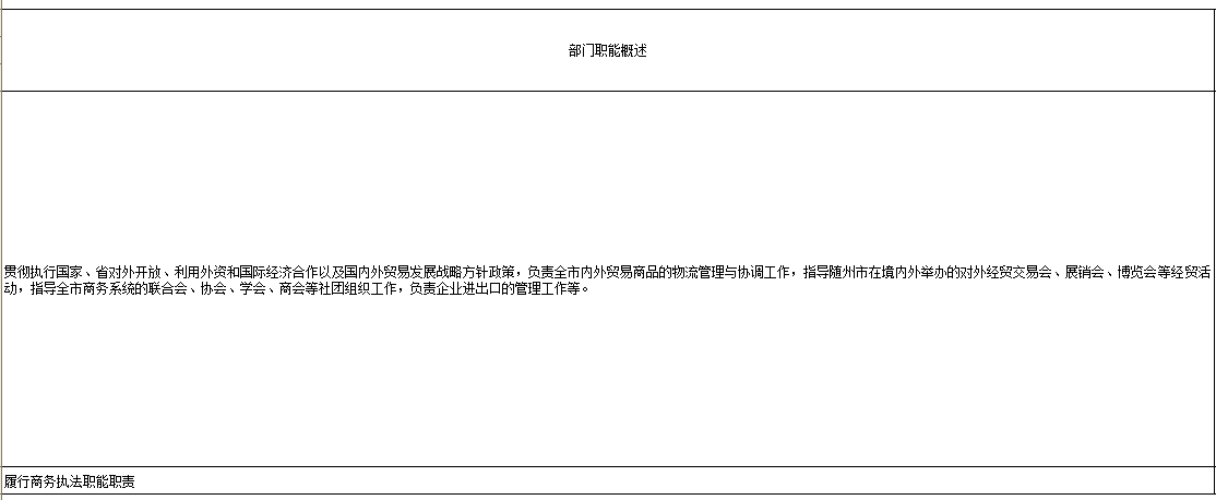 隨州市商務(wù)局是市人民政府工作部門,主管全市內(nèi)外貿(mào)易、國際國內(nèi)經(jīng)濟(jì)合作管理等工作。主要職責(zé)是: