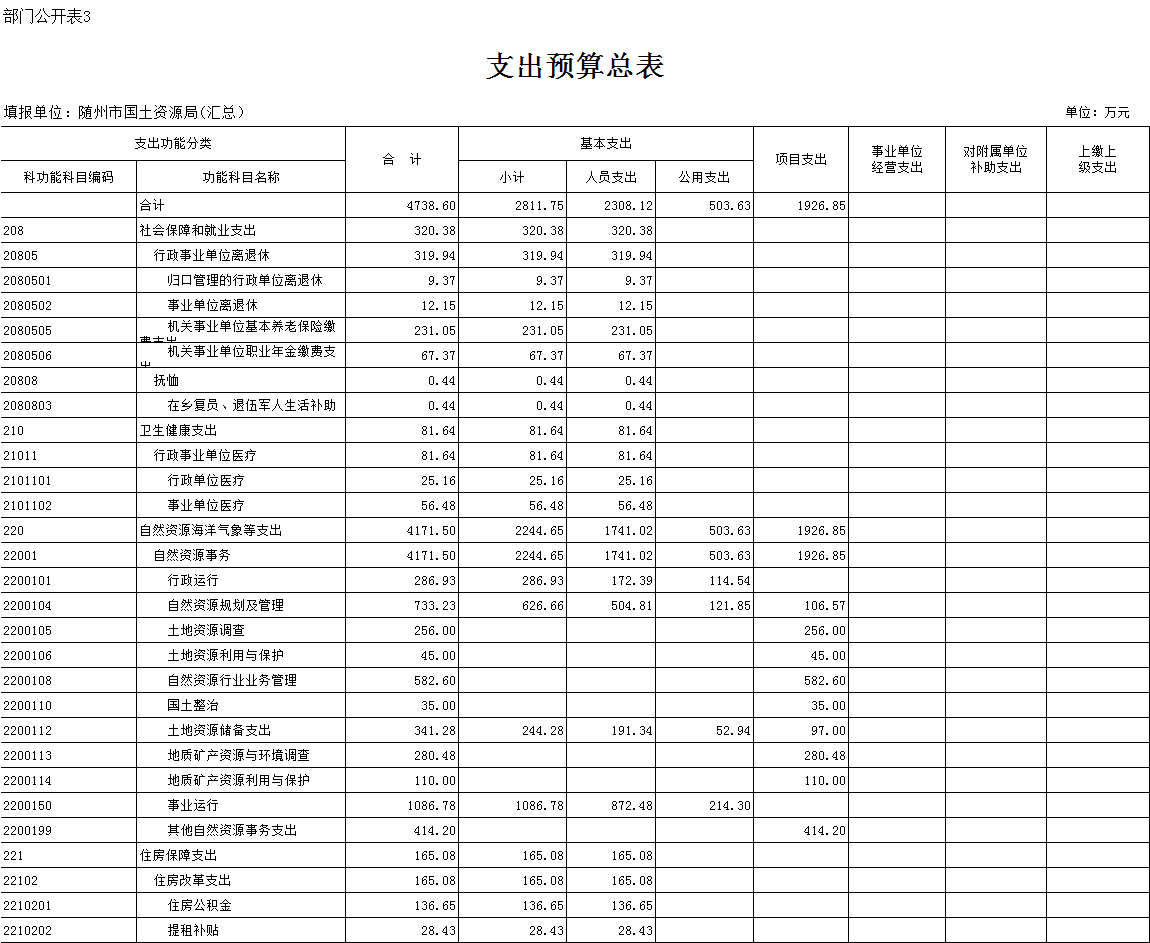 ??? 1、基本支出主要用于保障機關工作人員各項工資支出及國土資源管理工作正常運轉的各項費用。