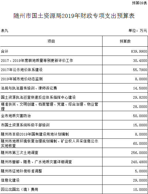 第二部分 ?隨州市國土資源局2019年部門預算情況說明