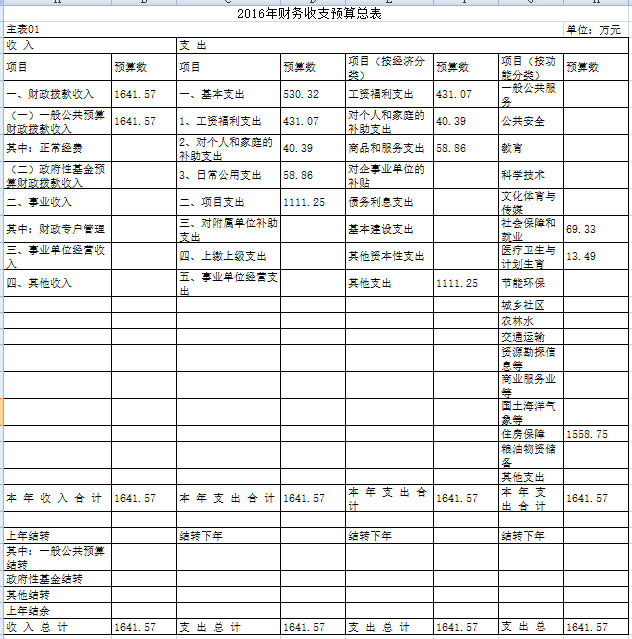 2016年中心收入預算總額為1641.57萬元,均為一般公共預算財政撥款收入。支出預算總額為1641.57萬元,其中:基本支出530.32萬元,項目支出1111.25萬元。
