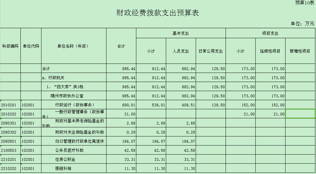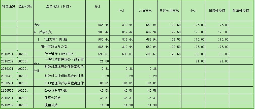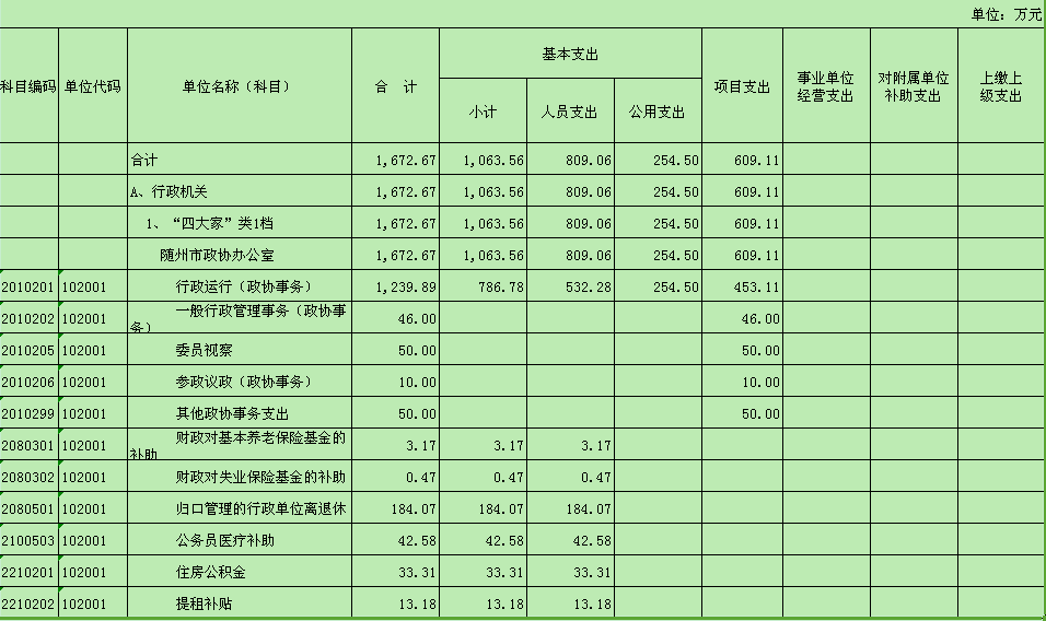 | 科目編碼 | 單位代碼 | 單位名稱(科目) | 合計 | 基本支出 | 項目支出 | ||||