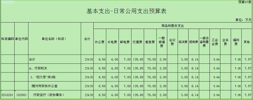 項目支出:項目支出經費總額575.11萬元。其中:工作經費98.11萬元,專委會工作經費26萬元,專項工作經費70元,例會經費8萬元,界別經費23萬元,委員活動經費51萬元,工會活動經費15萬元,文明單位創建專項費用5萬元,委員視察調研活動經費50萬元,政協“六百行動”活動經費10萬元,文化簡史叢書50萬元,政協委員之家建設經費158萬元,辦公樓搬遷相關費用45萬元。