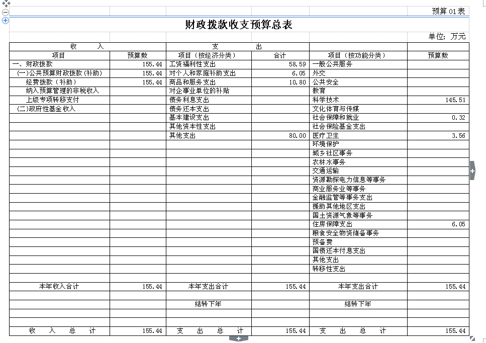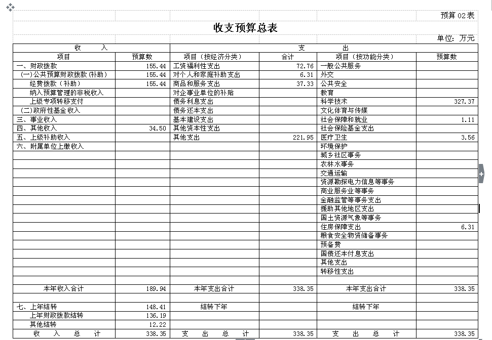 2016年市科協財政撥款預算總額為189.94萬元,其中財政撥款(補助)收入155.44元,其他收入:34.5萬元,上撥款結轉:148.41萬元