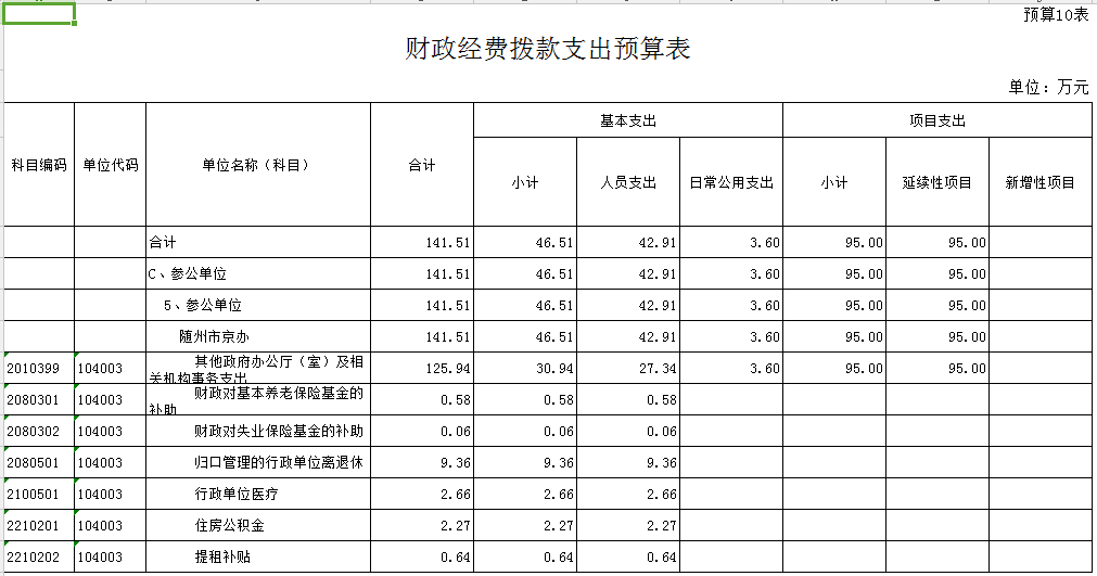 | 財(cái)政撥款收支預(yù)算總表 | |||||